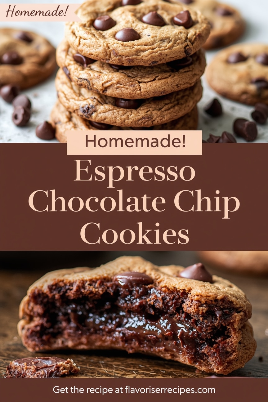 These Espresso Chocolate Chip Cookies are more than just a sweet treat; they are an ode to the simple joy of baking, elevated with a sophisticated twist. The deep, aromatic notes of espresso beautifully enhance the rich chocolate, creating a flavor profile that is both comforting and intriguing. Whether you’re baking them for a special occasion or simply to indulge in a moment of quiet pleasure, these cookies are sure to delight. They offer a perfect balance of chewiness, chocolatey goodness, and that irresistible coffee kick, proving that sometimes, the slightest adjustment can transform a classic into an unforgettable masterpiece. So go ahead, treat yourself and your loved ones to this grown-up take on a childhood favorite—you won’t regret it.