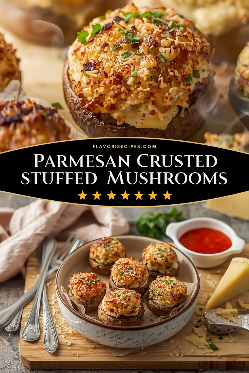 Parmesan Crusted Stuffed Mushrooms are more than just an appetizer; they are a culinary experience blending comfort with sophistication. Their rich, savory filling and irresistible crispy exterior make them a guaranteed crowd-pleaser and a personal favorite. Whether you’re hosting a grand soirée or simply seeking an elevated snack, this recipe offers a rewarding journey from prep to plate. Embrace the joy of creating something truly special and watch as these golden-capped beauties disappear from the platter. Enjoy the delicious artistry!