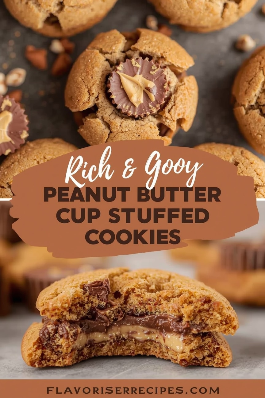 There’s something uniquely satisfying about biting into a warm, gooey cookie to discover a hidden treasure within. These Peanut Butter Cup Stuffed Cookies are more than just a dessert; they’re a joyful surprise, a comforting classic reimagined for modern palates. Perfect for sharing with loved ones or enjoying as a private indulgence, they embody the simple pleasure of homemade baking. So, tie on your apron, gather your ingredients, and prepare to create a batch of memories, one delicious, chocolatey, peanut buttery bite at a time.