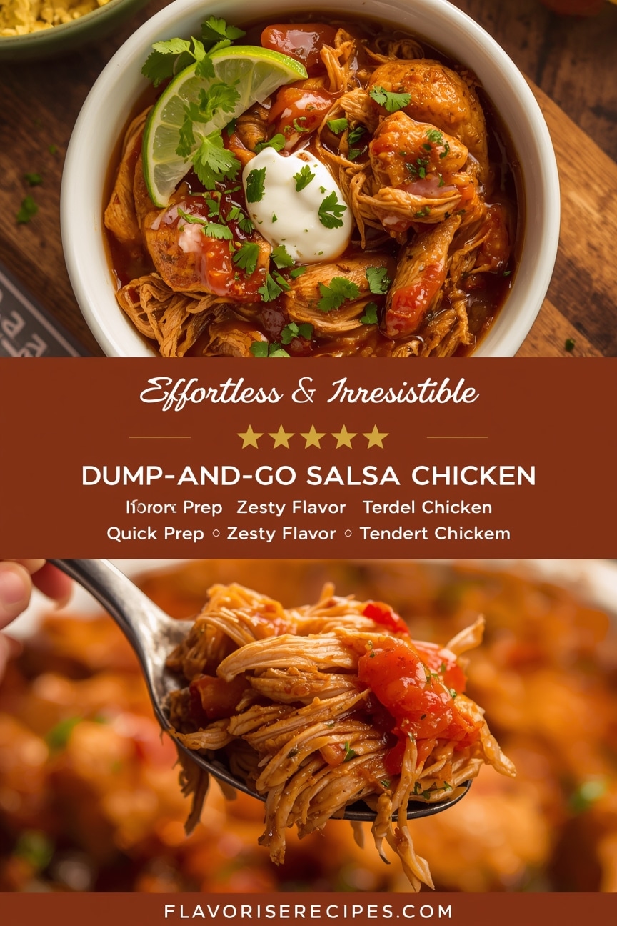 There you have it – Dump-and-Go Salsa Chicken, a testament that convenience and exceptional flavor can go hand-in-hand. This recipe offers a delicious escape from the endless “what’s for dinner?” dilemma, providing a wholesome, crowd-pleasing meal with minimal fuss. It’s perfect for busy weeknights, effortless entertaining, or simply when you crave something comforting and vibrant. Next time your schedule feels overwhelming, remember this simple, satisfying dish. Your slow cooker and your taste buds will thank you! Happy cooking!